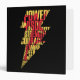 Check out Shazam's abilities written out in yellow text, with Shazam's silhouette in red over the front, shaped into a lightning bolt. Wisdom of Solomon, Strength of Hercules, Stamina of Atlas, Power of Zeus, Courage of Achilles, Speed of Mercury.