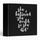 Inspirational binder displaying the phrase "She believed she could, so she did" in white brush script with an organic ink texture to achieve an authentic, hand lettered look.