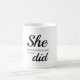 A classic mug featuring the motivational message "she believed she could, so she did"