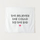 She believed she could so she did! Inspirational wall tapestry quote featuring modern typography with pink heart accent.