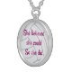 I chose gold plated so that the metal would not react with my skin oils and perspiration. But, I changed the necklace from the gold plated one to a sterling silver. My skin cells will tarnish the silver. But it will not look as bad if some portion of the gold plated necklace somehow became compromised. Zazzle did a find job turning the picture into a pendant for me. As you can see, the colors and the printing of the final product, match the preview. The picture I took is not very clear. But I am pleased with the product I received.