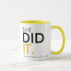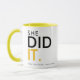 Celebrate a monumental achievement with this bold and stylish mug, perfect for any graduate. The phrase 'SHE DID IT.' is emblazoned in eye-catching black and yellow lettering, a vibrant declaration of success. This design is ideal for commemorating graduation, whether it's high school, college, or any other significant milestone. It's a wonderful way to honor the hard work and dedication that led to this proud moment. Make their graduation unforgettable with this celebratory and inspiring mug.