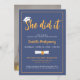 She Did It Grad Cap Dusty Blue Graduation Photo Invitation