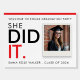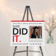 Celebrate your graduate's amazing achievement with this stylish 'She Did It' graduation welcome foam board. This design features a bold text graphic that proudly proclaims 'She Did It!' alongside a cherished photograph of the graduate. The classic black and red color scheme adds a touch of sophistication, while the 'Welcome to [Name]'s Graduation Party' and '[Name] - Class of [Year]' text allows for easy personalization. This foam board is perfect for directing guests and setting a celebratory tone for any graduation party or event. Make their special day even more memorable with this eye-catching and personalized piece of decor.