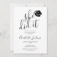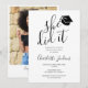 This stylish black and white "she did it" graduation party invitation can be personalized with your grad's special photo on the reverse. Designed by Thisisnotme©