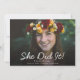Celebrate your grad's achievement with this stylish photo graduation announcement. The design features the words "she did it" in a handwritten script. The reverse side of the announcement features a gold star pattern. For further questions please contact us at ThePaperieGarden@gmail.com. Photo kindly provided by Unsplash. All photo-related media featured on this item is meant to be replaced and for display only. Please replace it with your own photo