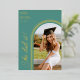 Celebrate your graduate's amazing accomplishment with this elegant She Did It arch photo graduation announcement. This stylish design features a modern arch with a customizable photo placeholder, perfect for showcasing your grad's senior portrait. The Teal color adds a touch of sophistication. Personalize it with your graduate's name, school, class year, and a special message. Printed on high-quality card stock with real foil accents for a touch of luxury. Make your graduate shine with this beautiful and unique announcement!