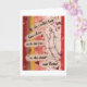 This digital collage artwork in bright red and yellow and pink features a stylish retro woman's silhouette amongst lots of lines and hearts, and reads: "She couldn't keep her colors inside the lines, so she drew new lines." This would make a great encouragement card for any woman in your life.