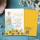 An elegant Bridal Shower design with a bride to be on a sunflower field and elegant calligraphy.