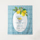 An elegant Bridal Shower design with blue tile background and a cup of lemons.