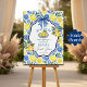 An elegant Bridal Shower design with blue tile background and lemons.