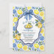 An elegant Bridal Shower design with blue tile background and lemons.