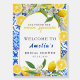 This watercolor lemon she found her main squeeze theme Mediterranean bridal shower invitation features Mediterranean tiles pattern in blue and white color.The dusty blue,yellow,navy blue and white color is a perfect color palette for classy and formal bridal shower party.