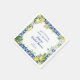 Designed to coordinate with the Jenny's Lemon Collection, this bridal shower napkin features yellow lemon bouquets decorating a square blue tile and gold frame. She Found Her Main Squeeze begins the bridal shower text. The bride's name and bridal shower follows written in a modern and trendy script font. The date completes the text. All the text is editable.