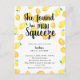 Budget Lemon bridal shower with text that says "She found her main squeeze" bridal shower invitation.
