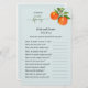 Watercolor Citrus Orange Bridal shower Trivia games. Personalize the back of the card with bride's name and shower date.