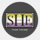 Sticker featuring the pronoun SHE in an minimalistic yet new and innovative design. Perfect gift for non-binary feminine identified persons.