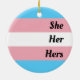 Lightweight, smooth, pure white ornament with nice sheen. Perfect size to be seen from across the room ... and to attract closer inspection! Price was great for ordering enough for the whole family! Clear, bold black design just as requested. Matches the order exactly. Just so nice!