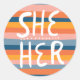 SHE/HER Pronouns Stripes Handlettering Sheet of Classic Round Sticker