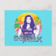 Trendy retrowave sunset graphic of She-Hulk with palm trees.