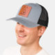 Custom Leather Patch Hat, Sytle: Adult Retro Trucker Cap, Color: Heather / Black, Shape: Circle