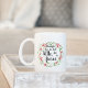 Small but mighty! Cute and inspiring mug for women who change the world features the Shakespeare quote "though she be but little, she is fierce" in brush lettering, inscribed inside a watercolor floral wreath in pink and green.