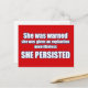 This card, to me, represents the power of the feminine. The refusal to be a good girl, "she was warned", the demoralizing attempt to belittle, "she was given an explanation" and the defiant strength to forge ahead in spite of male opposition, "she persisted".