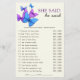 Introducing Our "He Said, She Said" Bridal Shower Game - Fluttering Fun for Your "He Gives Her Butterflies" Theme! A bridal shower should be filled with laughter, joy, and memorable moments. Our "He Said, She Said" Bridal Shower Game is the perfect addition to your celebration, adding a playful twist to your "He Gives Her Butterflies" theme. The Game Concept: "He Said, She Said" is a delightful and interactive game that invites guests to guess who said what when it comes to the couple. It's an opportunity for the bride-to-be to share stories and anecdotes about her relationship, adding a layer of sentimental fun to the bridal shower. Matching Theme: This game perfectly complements the "He Gives Her Butterflies" theme. It's all about celebrating love and the journey of the couple, creating an engaging and memorable experience for your guests. Why It's Perfect: Sentimental Laughter: This game encourages guests to share their favorite stories and memories about the couple, adding a sentimental touch to the fun. Interactive Entertainment: It's a great way to engage guests and create an atmosphere of laughter and togetherness during the bridal shower. Matching Theme: "He Said, She Said" harmoniously matches the "He Gives Her Butterflies" theme, ensuring your bridal shower is filled with the same whimsy and charm. This "He Said, She Said" Bridal Shower Game is more than just an activity; it's an opportunity to bond with the bride-to-be and create lasting memories. Whether you're celebrating in a garden, a cozy home, or any other venue, this game is sure to add a layer of fun and sentiment to your bridal shower. Elevate your bridal shower experience with this engaging game and infuse your celebration with laughter, love, and heartwarming stories. Order yours today, and watch your guests have a wonderful time reminiscing about the couple, adding an extra layer of enchantment to your special day. Your bridal shower is sure to be remembered for its charming theme and the sentimental fun created by this delightful game.