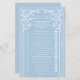 The "Light Blue Romance and vintage sophistication" is a stunning array of wedding stationery that exudes sophistication and romance. This collection includes invitations, RSVP cards, menu cards, and place cards, all featuring an exquisite blend of modern typography and classic elegance. The soft blue background with intricate white floral patterns creates a serene and enchanting vibe. The names are written in a modern, bold font, emphasizing the importance of the event. The rest of the text is in a classic, graceful script, creating a harmonious contrast. Overall, this design beautifully blends modern typography with timeless elegance, making it ideal for any romantic wedding celebration.