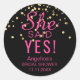 'SHE SAID YES' Bridal Bachelorette Hot Pink Black Classic Round Sticker