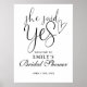 This elegant black and white script "She said yes" bridal shower welcome sign can be personalized with your name and special date. Designed by Thisisnotme©
