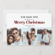 A modern " She said yes!" " Merry Christmas" 3 photo collage Christmas engagement announcement card. The design features modern typography . On the rear side of the card, the design features festive color and more customizable text.