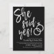 Having your She Said Yes Engagement Dinner Black Invitation match the theme of your party is a great detail that your guests will appreciate. The thoughtfulness of a consistent party theme is often appreciated and can show your guests that you can host a cohesive event.