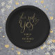 This elegant black and gold script "She said yes" engagement party paper plate can be personalized with all your names and special date. Designed by Thisisnotme©