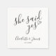 This stylish black and white "she said yes" engagement party napkin can be personalized with your engagement party details. Designed by Thisisnotme©