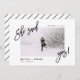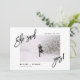 She said yes modern typography photo wedding save the date invitation. A modern monochrome design. Graphic stripe backer design. Colors can be changed.