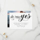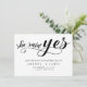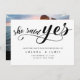 Modern minimalist black she said yes script save the date card. This elegant card features of handwritten script in black color with cute red heart above ''she said yes'' text on white background and wedding details and names written in capital lettering in black color.Add website and photo to the back of the card. To edit this template click customize further.