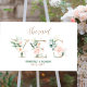 Yes- Flowers decorated letters with pink and white roses on a white and olive-green background.