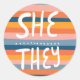 SHE/THEY Pronouns Stripes Handlettering Sheet of Classic Round Sticker
