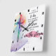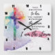 This inspiring square wall clock features a vibrant watercolor cross, blending shades of blue, pink, and purple. Alongside it, the powerful message "They whispered to her You cannot withstand the storm She whispered back. I am the storm." is elegantly displayed, creating a bold statement of strength and resilience.