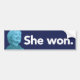 She Won Bumper Sticker
