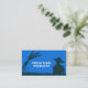 A farm business card on a blue background with an illustration of a silhouette of a farmer and a sheaf of wheat. Full contact information are available on the back and are decorated with icons.