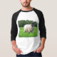 I bought the Men's Basic 3/4 Sleeve Raglan T-Shirt, White/Navy. It arrived on time for a gift and is of a great quality and fits perfectly! So cute! Zazzle has done it again! The printing was clear and filled in solidly.