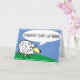 Sheep Design congratulation card has a cartoon sheep with the pun "Congrat-ewe-lations". Cartoon illustration of a sheep in a green field against a blue sky.