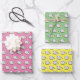 A fun all-over pattern of cartoon-style sheep. Agriculture, agricultural, farmyard or farmhouse barnyard style. Fun sheep wrapping paper. Three different background colors with a pattern of sheep.