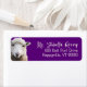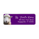 Sheep face address label in purple. Customize text in two places with name in script and address printed. Perfect for a sheep farmer, wool broker, knitter or fiber artist of any kind. Easily change the background color in the design area.