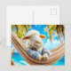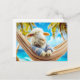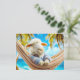 Sheep in hammock under palm tree holiday postcard