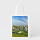 I own a lot of reusable grocery bags, but this one holds its box shape and simply stands up on its own even if there is nothing in it. Its stiffer than your regular reusable bag too, and the material is water resistant. I poured water on the exterior and it didn't penetrate inside to the other side. I'm buying a couple more. Wish I knew how durable these bags were or I would have purchased a few more with my initial order. I also like how it folds and buttons up when not in use, making it easy to put into a handbag or luggage. I haven't used this bag yet, as I purchased it for travel use, like when you're at the airport and need to small sturdy bag to place any airport purchases in, like food, souvenirs etc. I can tell you when you first see this bag, it looks very cheap, but after closer inspection of the material and the seams its a very sturdy reusable bag. I tested it out by putting some really heavy objects inside and I could not observe any stress to the bag at all. Another thing I like about it, is the fact the medium size that this is makes it easy to just carry it in your hand without the bottom of the bag scraping the ground, like most other bags do when you're short. That alone, deserves 5 stars. I just wish there were more colors to choose from! The PDX Airport Carpet printing looks just like the photo, and using this bag during travel might be a conversation piece when/if a native from Oregon happens to see it.