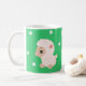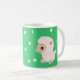Sheep mug - Cute cartoon sheep lie in front of green backgound White 11 oz Classic White Mug-for kids or anyone