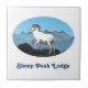 The logo for mythical Sheep Peak Lodge, somewhere in the far north, featuring a Dall's Sheep perched on a high peak. Customizable text reading "Sheep Peak Lodge" also appears. Named after American naturalist William Healey Dall (1845–1927). Dall’s sheep (Ovis dalli), most often referred to as Dall sheep. are native to northwestern North America. Dall sheep are typically all white in color, although a few black hairs on the tail are not uncommon. The white coat is an adaptation, or special trait that helps them survive. Dall sheep typically move to lower altitudes in the winter, but predators are more numerous there. The white coat helps the sheep go unseen against the snow by predators. In the summer months, their coat does not change color, but stays white. They are still protected, however, because they move to steep and rocky cliffs where predators are hard-pressed to follow. to slate brown.The sheep inhabit the subarctic mountain ranges of Alaska, the Yukon Territory, the Mackenzie Mountains in the western Northwest Territories, and northern British Columbia. Dall sheep are found in relatively dry country and try to stay in a special combination of open alpine ridges, meadows, and steep slopes with extremely rugged ground in the immediate vicinity, to allow escape from predators that cannot travel quickly through such terrain. The primary predators of Dall’s sheep are wolves, coyotes, black bears, and grizzly bears; golden eagles are predators of the young. Dall’s sheep walk a survival tightrope, although they do it rather effectively. They have lived since the Pleistocene in places such as Alaska’s Arctic Refuge. Male sheep have thick curling horns. The females have shorter, more slender, slightly curved horns. Males live in bands which seldom associate with female groups except during the mating season in late November and early December. Lambs are born in May. All ungulates walk on hoofed toes. Hooves are made of keratin, which encases the toe bones. Dall’s sheep walk on two toes which places them in the “even-toed” group of ungulates similar to giraffes, deer, and camels. Hooves are another adaptation that enable Dall sheep to live on rocky, steep terrain. Their toes are flexible and able to adjust to the uneven surfaces in their mountain habitats where sure footing is essential. During the summer when food is abundant, the sheep eat a wide variety of plants; primarily grasses and sedges along with broad-leaved plants and dwarf willows. The winter diet is much more limited, and consists primarily of dry, frozen grass and sedge stems available when snow is blown off, lichen and moss. Many populations visit mineral licks during the spring, and often travel many miles to eat the soil around the licks. Sheep will often travel to mineral licks to eat soil. These are typically rocky outcrops where high concentrations of minerals are pooled. This replenishes essential minerals that the sheep cannot get from their daily diet of plants. Dall’s sheep have well developed social systems. Adult rams live in bands, or groups, associated with ewe groups during the mating season. Since Dall sheep are very loyal to their social group, they have very specific home ranges After joining a social group, sheep are never known to leave it.